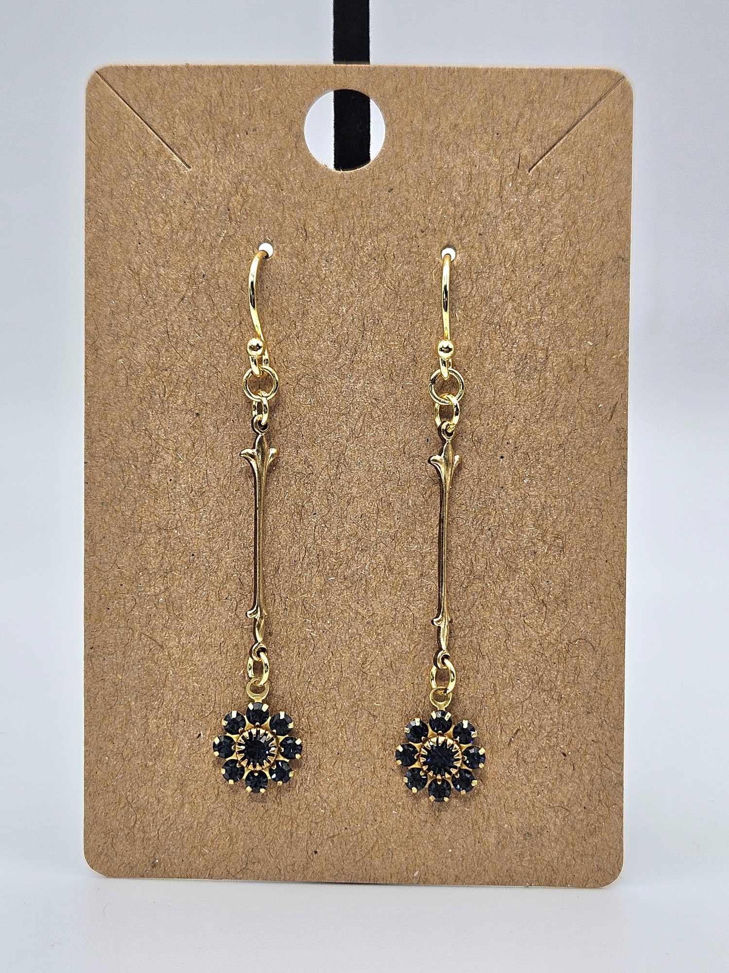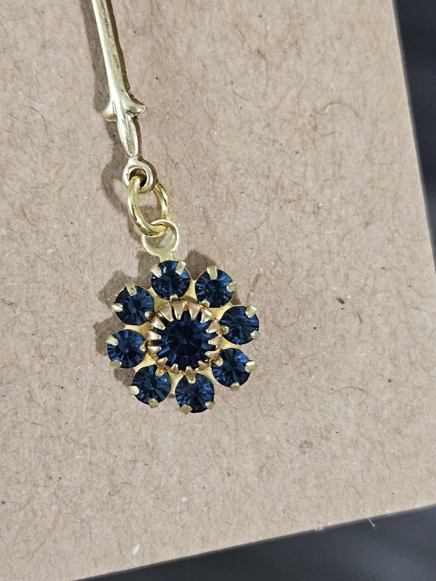 Montana Blue Sapphire vintage Swarovski flowers attached to a fleur-de-lis bar connector.